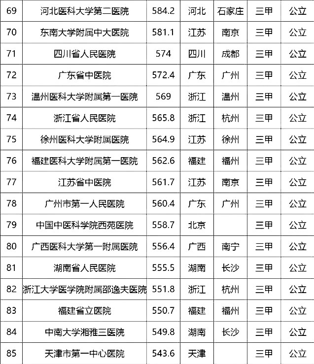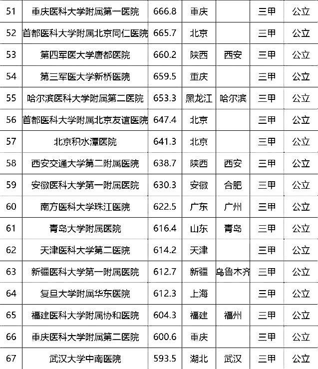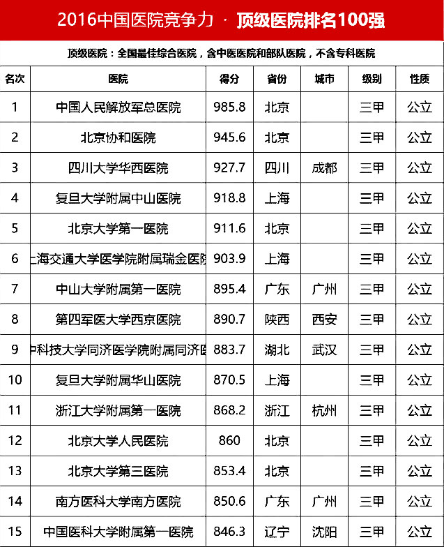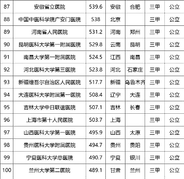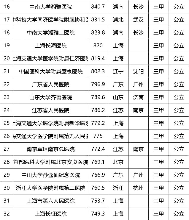 “100強(qiáng)”榜單中,入圍最多的三個(gè)省市分別是北京(16家醫(yī)院)、上海(13家醫(yī)院)、廣東(9家)。“100強(qiáng)”共覆蓋32個(gè)城市,包括4個(gè)直轄市(36家醫(yī)院)、23個(gè)省會(huì)城市(59家醫(yī)院)、5個(gè)地級(jí)市(5家醫(yī)院)??傮w看,城市的醫(yī)院平均得分和上榜機(jī)構(gòu)數(shù)有一定的相關(guān)性,上榜機(jī)構(gòu)數(shù)多的城市一般得分均值較高,說(shuō)明這些城市醫(yī)院整體實(shí)力較高。